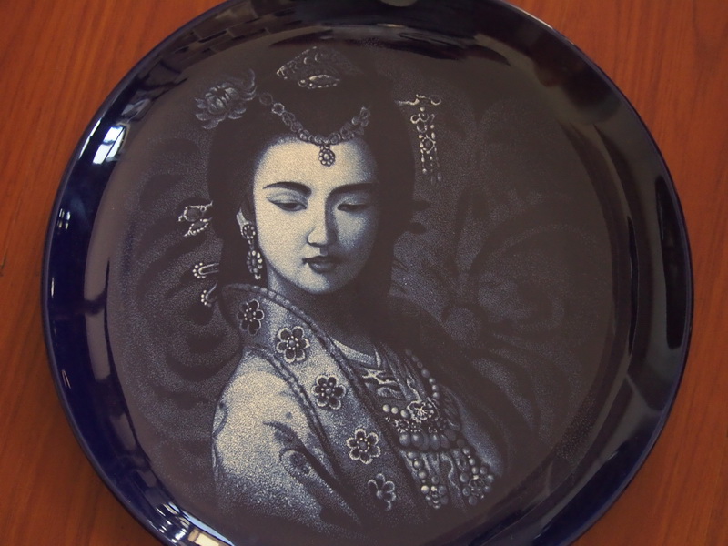 威海刻瓷是古老刻瓷技艺的继承和创新,就是用天然金刚石、人造金刚石、合金钢等硬质材料制作的刀具,以刀代笔在瓷器的釉面上雕刻山水、花鸟、鱼虫、动物、人物及书法等各类题材的作品,并根据不同釉色和不同敷色或不敷色而显形的一种艺术。魏晋时期的“剥玉”,宋代定窑的划花、剔花,龙泉窑的“跳刀”都是刻瓷艺术的原形。清代乾隆皇帝为将自己的墨迹永世保留令宫内能工巧匠用硬质工具将其雕刻并敷着墨色,墨色浸入瓷胎之内经久不变,这就是真正刻瓷艺术的出现。