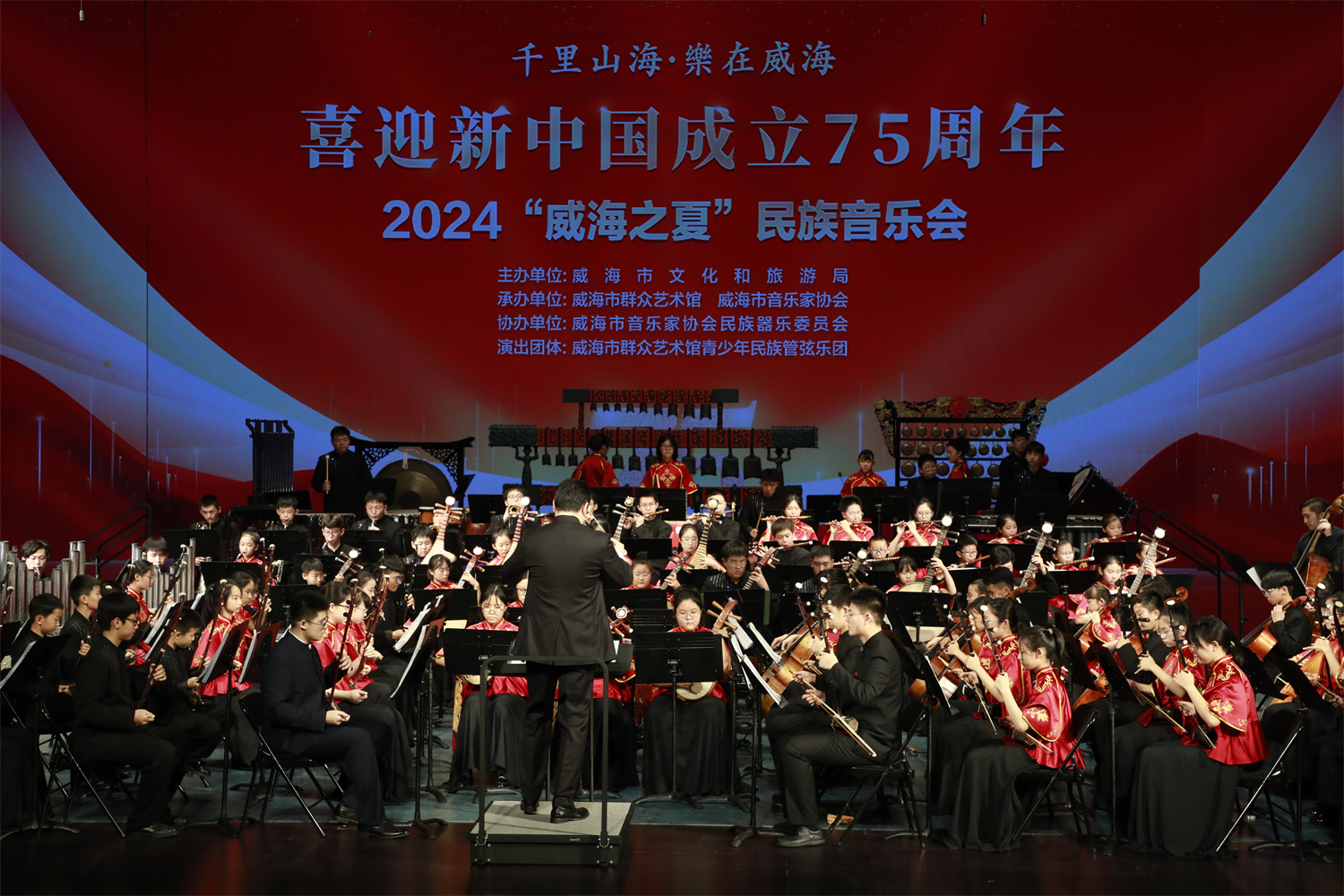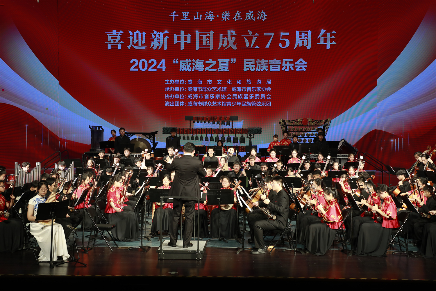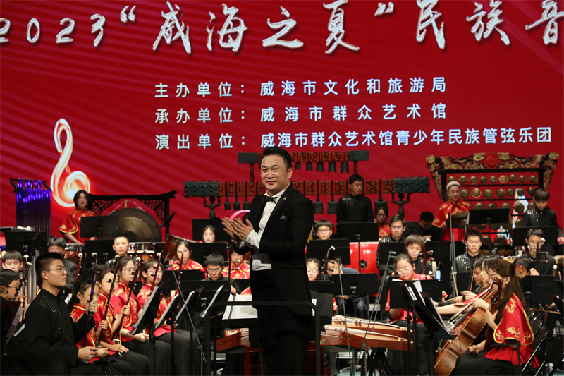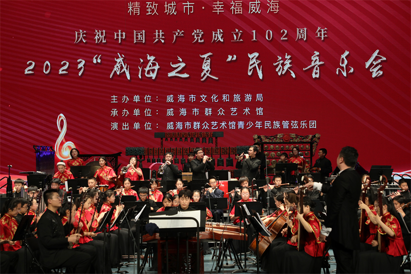 目前,乐团可根据演出需要组成大型乐团(50人以上),中型乐团(30-50人),中小型表演团(5-30人)、弹拨室内乐(5-15人)。乐团从2018年底以来曾多次举办专场音乐会,如:《2019威海市群众艺术馆青少年民族管弦乐团汇报音乐会》、《“精致城市·幸福威海——我和我的祖国”2019威海市青少年民族音乐会》、《我和我的祖国-庆祝新中国成立70周年-2019威海市中秋民族音乐会》、两场《2020威海市新春民族音乐会》。演出的作品有《北京喜讯传边寨》、《节庆欢舞》、《瑶族舞曲》、《春节序曲》、《北方民族生活素描》组曲、《印象国乐·大曲》、《红楼梦·序曲》、《情系南海》、《望春风》、《嫦娥奔月》、《我爱你塞北的雪》、《在希望的田野上》、《今天是你的生日·中国》、《我和我的祖国》、《花好月圆》等30多首作品,承担乐团合奏、乐器独奏、协奏、室内乐小重奏等多类型演出任务。